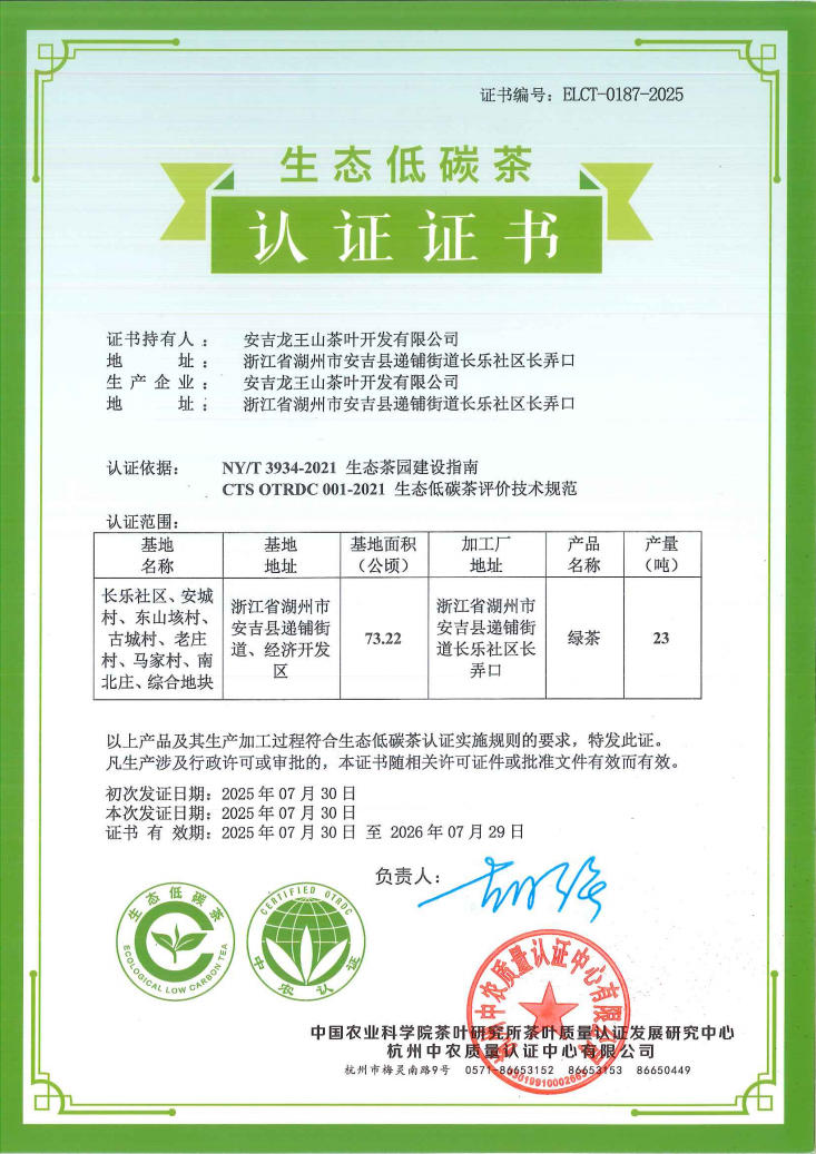 地址:浙江省湖州市安吉縣長(zhǎng)弄口古鄣東路安吉龍王山茶葉開發(fā)有限公司
